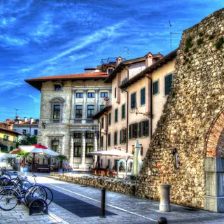 Travel through the fertile Friuli countryside, pedaling along quiet roads and paths near the Tagliamento River. Pass Osoppo and Buia before arriving in Udine, a vibrant trading town steeped in history. Its architectural gems, like the Duomo and old town, make it an ideal place to explore. Overnight stay at the 4-star Hotel Ambassador or equivalent.