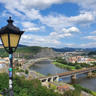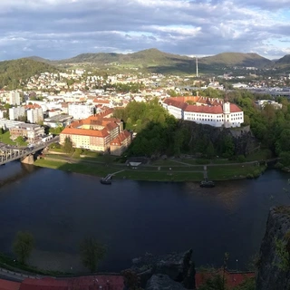 Then we will head towards the romantic region of the Czech Central Mountains. This ancient volcanic region rises high around our river valley route, medieval castles looming over visitors from the narrow peaks of extinct cones. But we will use the ancient trade route along the river Labe connecting the Czech and Saxon Kingdoms. We will enter the Czech Central Mountains by the symbolically named Porta Bohemica. From here we will continue to nearby Žernoseky, a village known for its wine-growing and Baroque chateau. Our next landmark will be more modern: the Masaryk flood-gates, followed by the ancient ruins of Střekov Castle majestically rising above the City of Ústí. In Ústí, we can admire the most off-center tower north of Alps. The incline of the tower was caused due to a heavy bombing at the end of World War II.